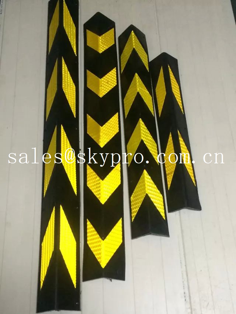 Rubber corner protector uses integral molding for rubber steam curing, and the toughness all in one set of rubber, soft rubber body moderate hardness, wear resistance and flexibility, can effectively protect vehicles and buildings. With a striking yellow reflective warning films, black and yellow, and enhance visibility during the day, embedded in bright yellow reflective material, in poor light or at night more attractive for drivers and improve safety.